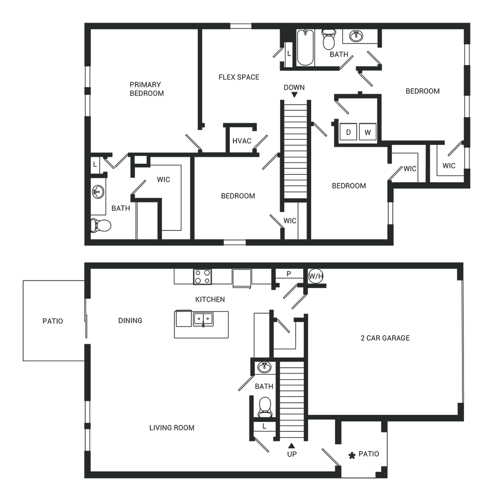 - 4 Bedrooms- Discovery- From $2,6634 Beds, 2.5 Baths, 2121 sq ftAvailable Dec 8- Model Gallery- Floorplans- Availability Details- Price - Availability Date - Unit - Sq Ft - $2,663 - December 8, 2025 - 1011CC - 2121 - Model Amenities and Features- Features- Air Conditioning