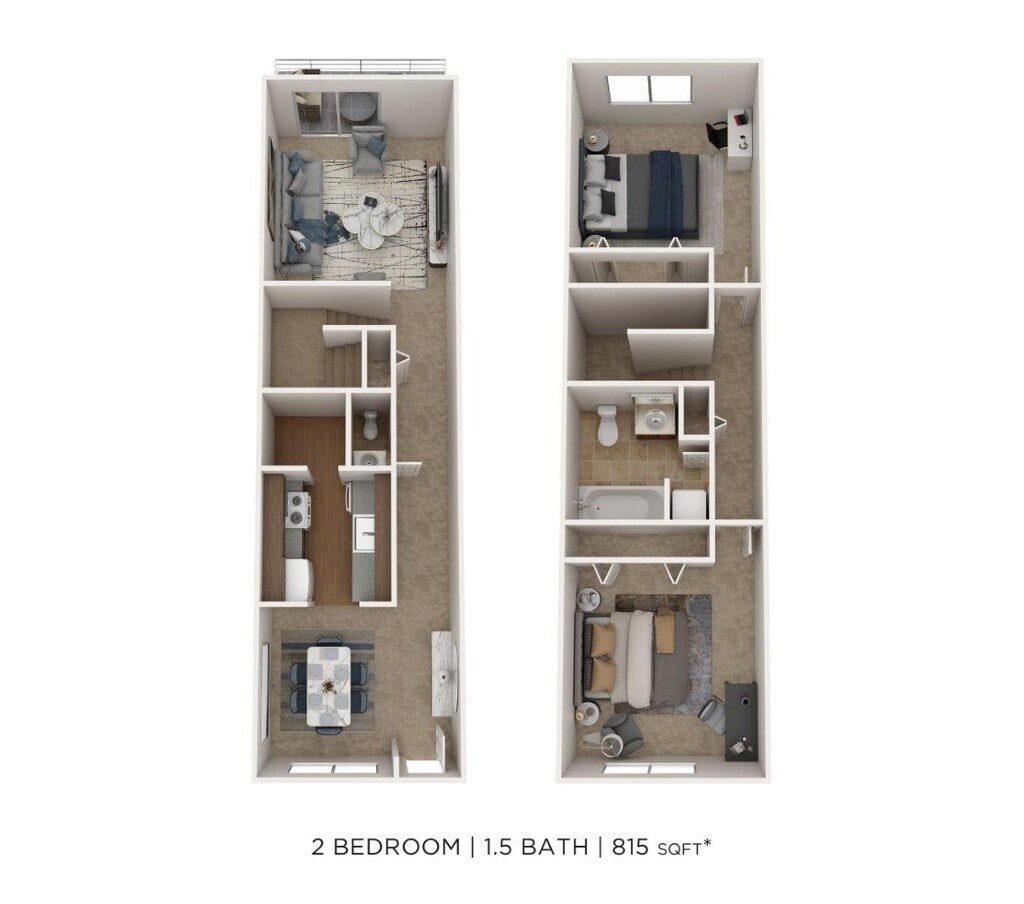 Apartment Model: Two Bedroom 2 Bath - 1,050 sqftFrom $1,8702 Bedroom, 2 Bath, 1050 sq ftAvailable November 13, 2025Two Bedroom 2 Bath - 1,050 sqft - Floorplan 1 Two Bedroom 2 Bath - 1,050 sqft - Floorplan 2 Apartment Unit: 48OApartment Model: Two Bedroom 2 Bath - 1,050 sqft$1,8702 Bedroom, 2 Bath, 1050 sq ftAvailable November 13, 2025Two Bedroom 1.5 Bath Townhome - 815 sqft