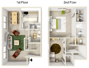 2 Bedroom Townhouse - Available - Floorplan 1 2 Bedroom, 1 Bath