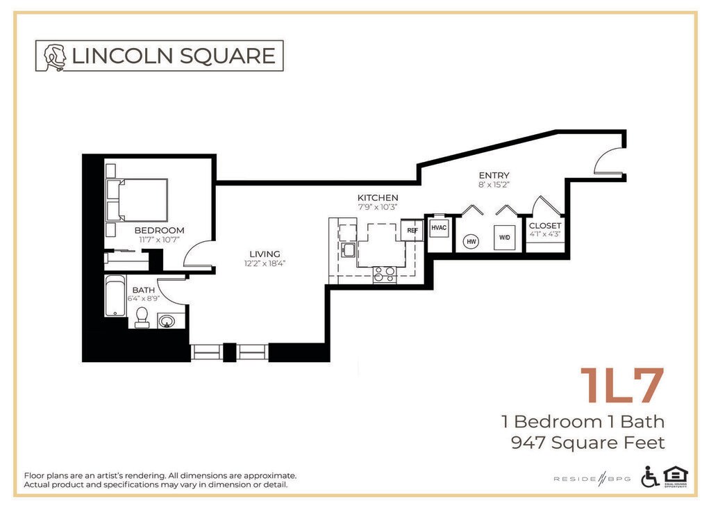 1L7 - Floorplan 1 Apartment Unit: 107Apartment Model: 1L7From $1,7201 Bedroom, 1 Bath, 947 sq ftAvailable Now1L3.10