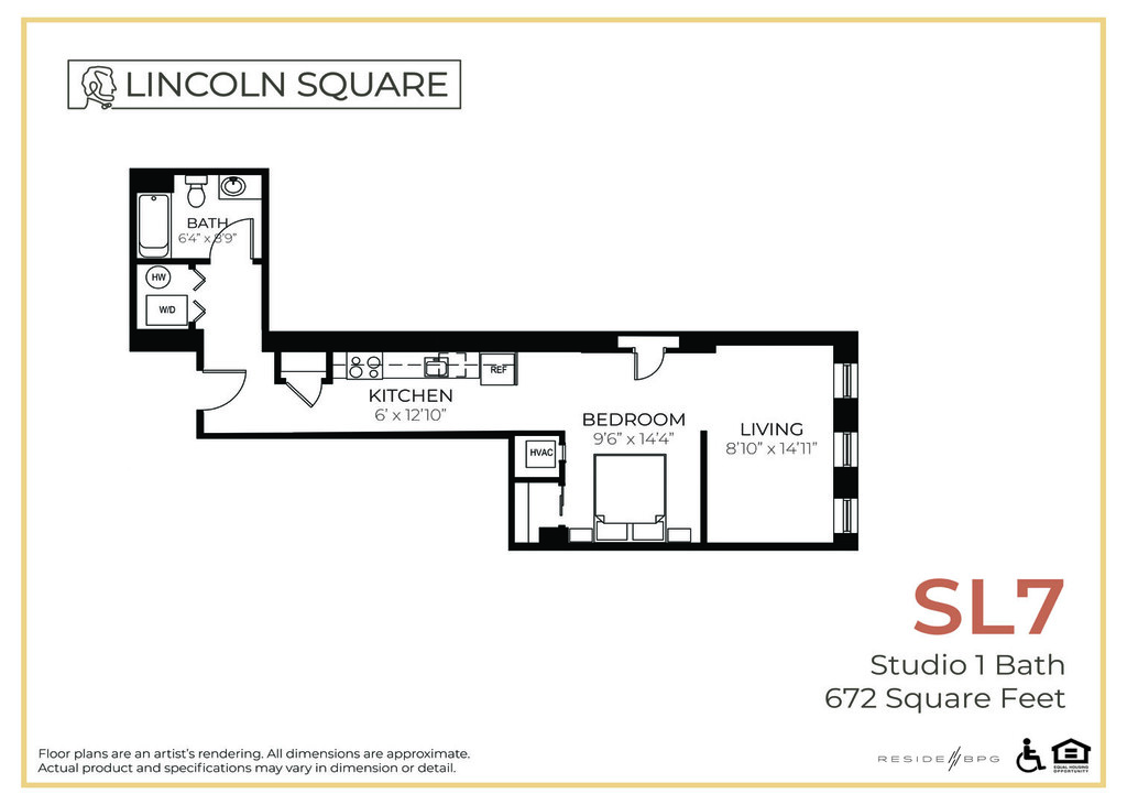 SL7 - Floorplan 1 Apartment Unit: 307Apartment Model: SL7From $1,297Studio, 1 Bath, 672 sq ftAvailable December 16, 2025Floorplan SL3