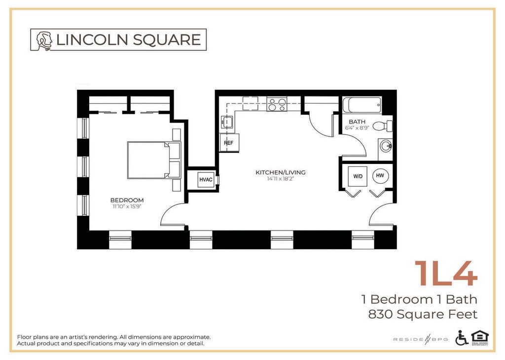 1L4 - Floorplan 1 Apartment Unit: 400Apartment Model: 1L4From $1,6581 Bedroom, 1 Bath, 830 sq ftAvailable NowFloorplan 1L7