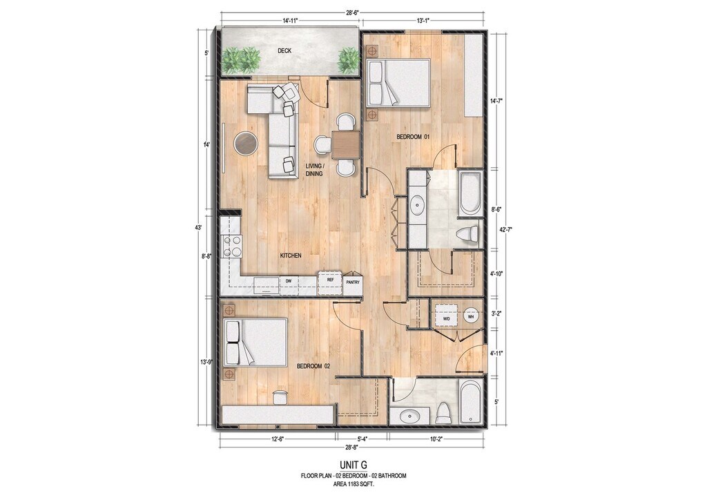 Unit: 214 - Image 9 Apartment Unit: 212Apartment Model: 2BR/2.0BA2 Bedroom, 2 Bath, 1183 sq ftAvailable Now![]()