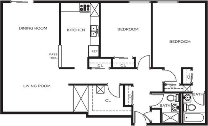 2 Bed 2 Bath - Floorplan 1 ![]()