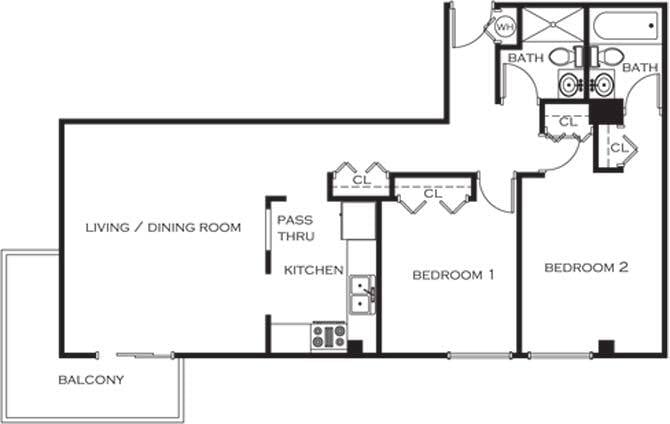 2 Bed 2 Bath - Floorplan 2 Apartment Unit: 1506Apartment Model: 2 Bed 2 Bath$9992 Bedroom, 2 Bath, 1000 sq ftAvailable Now