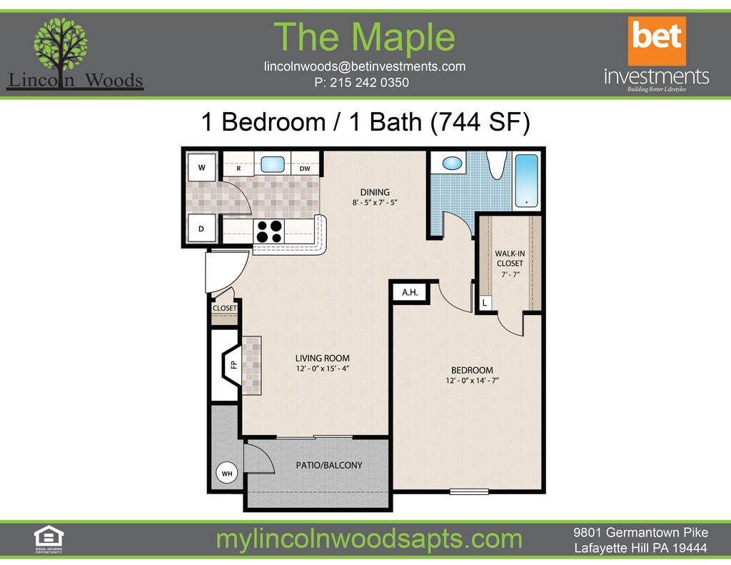 Apartment Model: The MapleFrom $1,9601 Bedroom, 1 Bath, 744 sq ftAvailable Now![]()