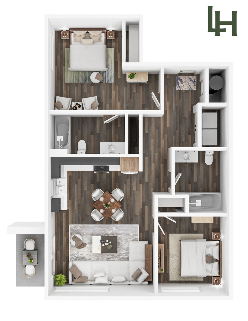 2 Beds, 2 Baths, 844 sq ftAvailable NowModel Gallery