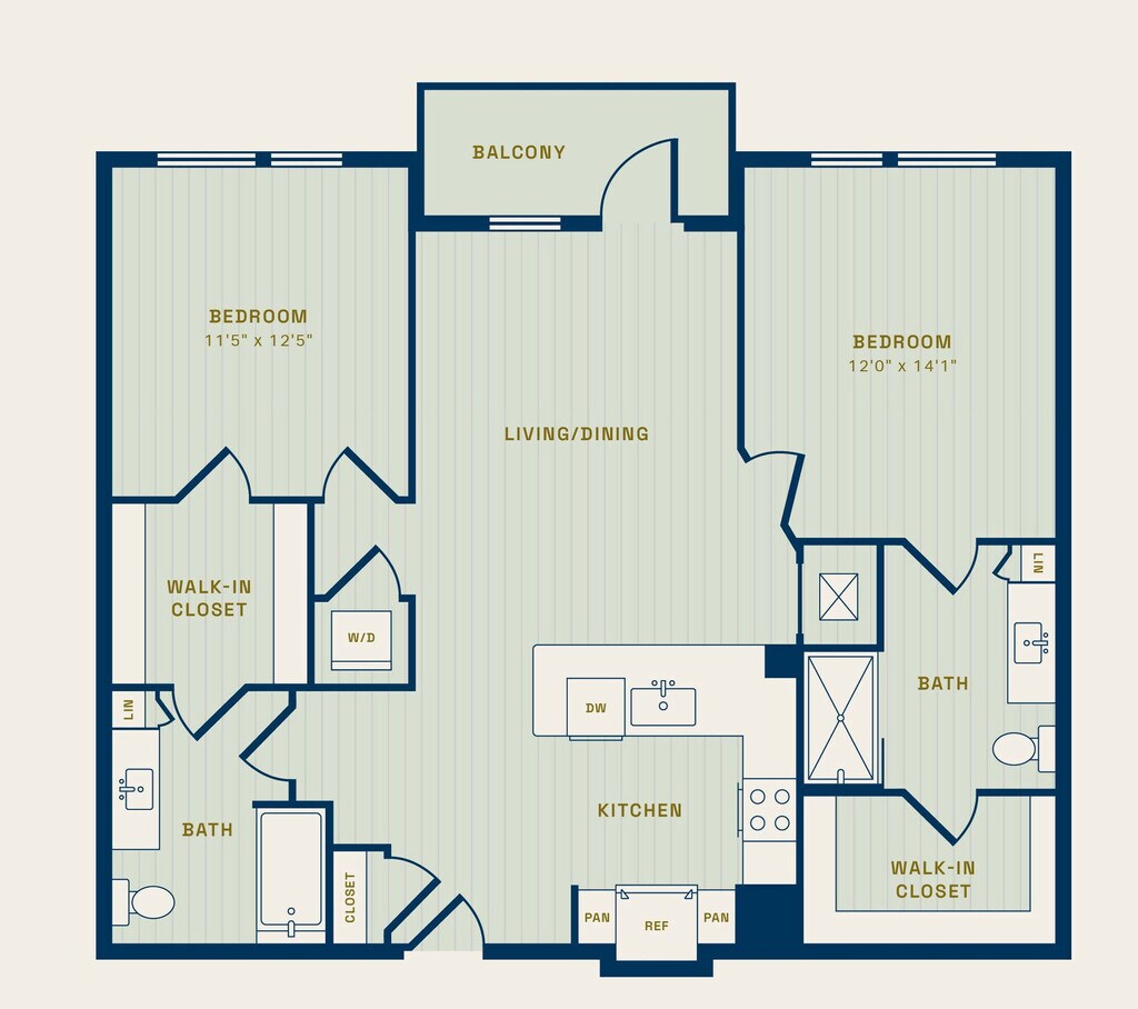 Apartment Model: A2From $1,2871 Bedroom, 1 Bath, 722 sq ftAvailable Now![]()