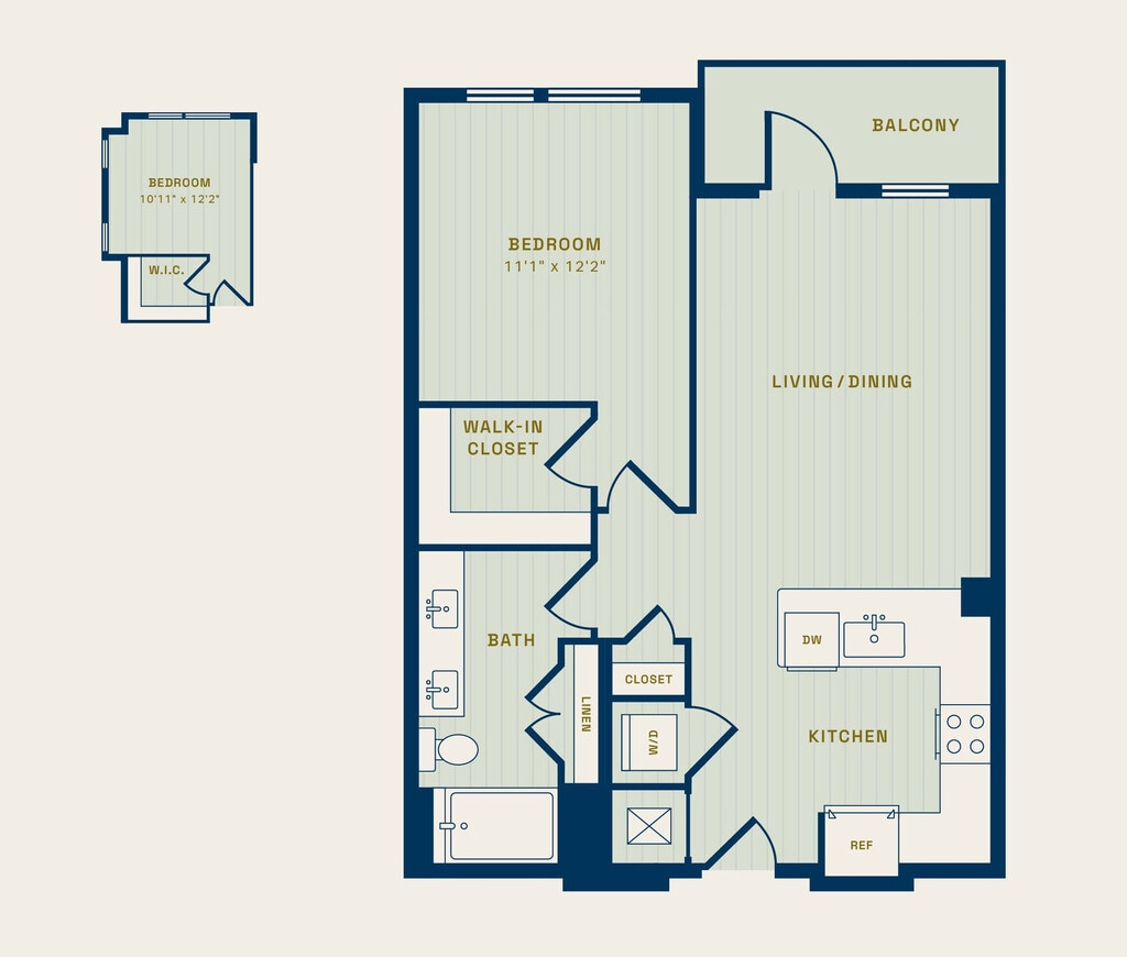 1 Bed, 1 Bath, 765 sq ftAvailable NowLargest 1 BedroomThis is the largest 1 Bedroom at this PropertyModel Gallery