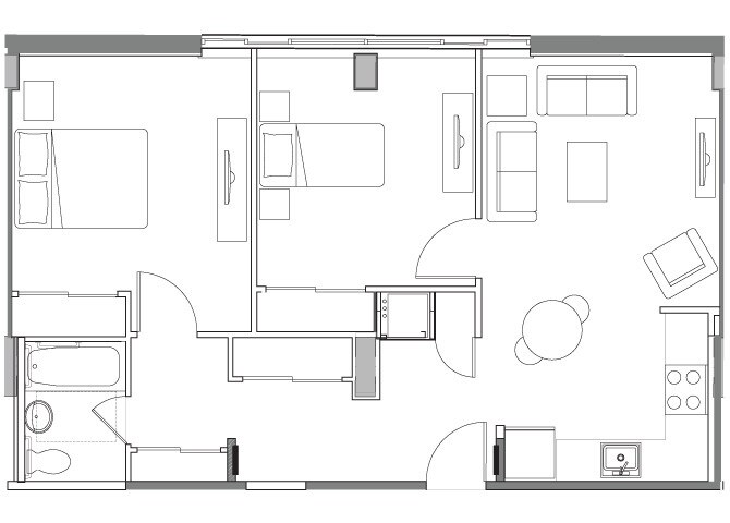 1 Bedroom - Floorplan 2 2 Bedrooms