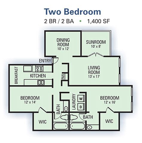2 Bedroom Townhome - Floorplan 1 Apartment Unit: 12EApartment Model: 2 Bedroom Townhome2 Bedroom, 1.5 Bath, 1400 sq ftAvailable Now3 Bedrooms
