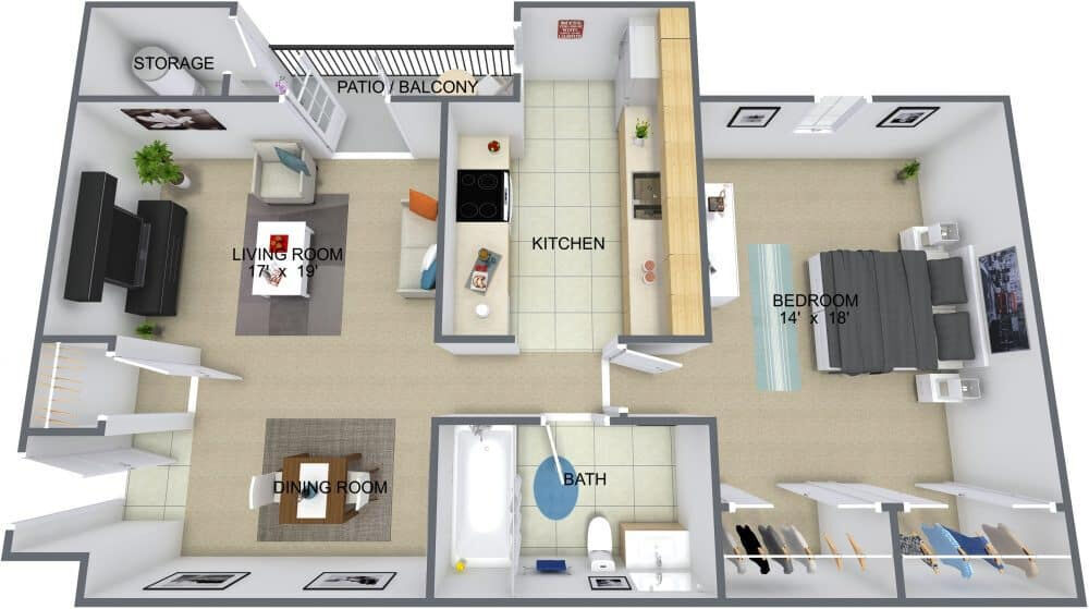 Apartment Model: The Cypress$1,2991 Bedroom, 1 Bath, 823 sq ftAvailable NowThe Cypress - Floorplan 1 2 Bedrooms