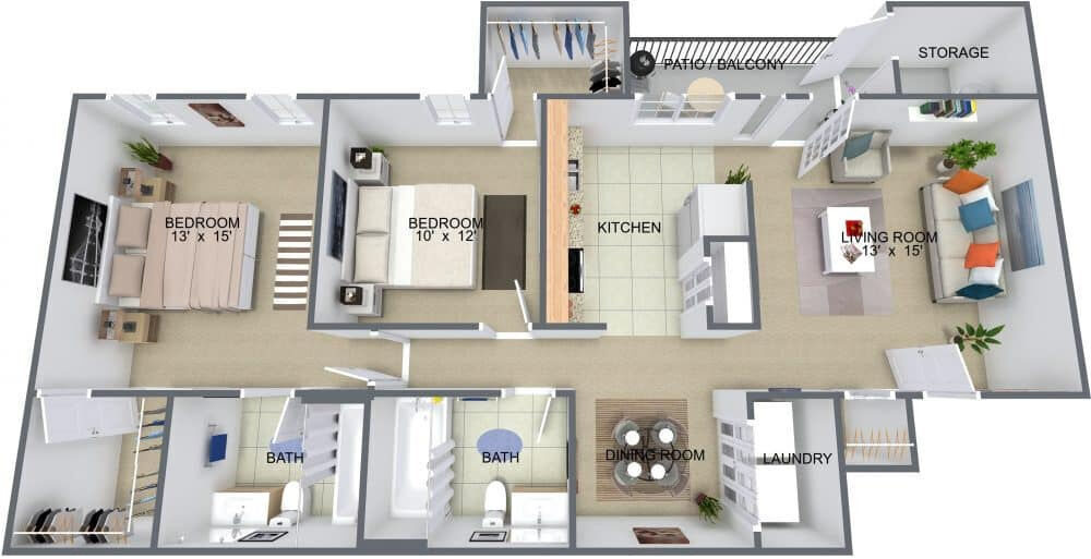 2 Beds, 2 Baths, 970 sq ftAvailable NowModel Gallery