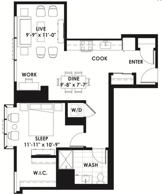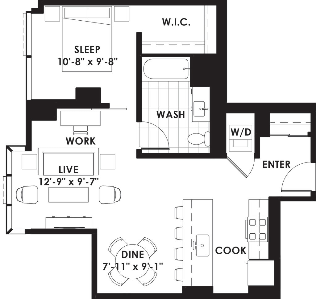 Studio, 1 Bath, 703 sq ftAvailable January 19, 2026Largest StudioThis is the largest Studio at this PropertyModel Gallery