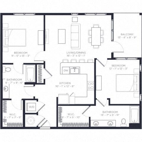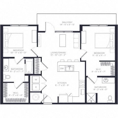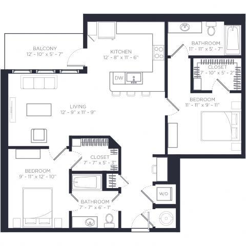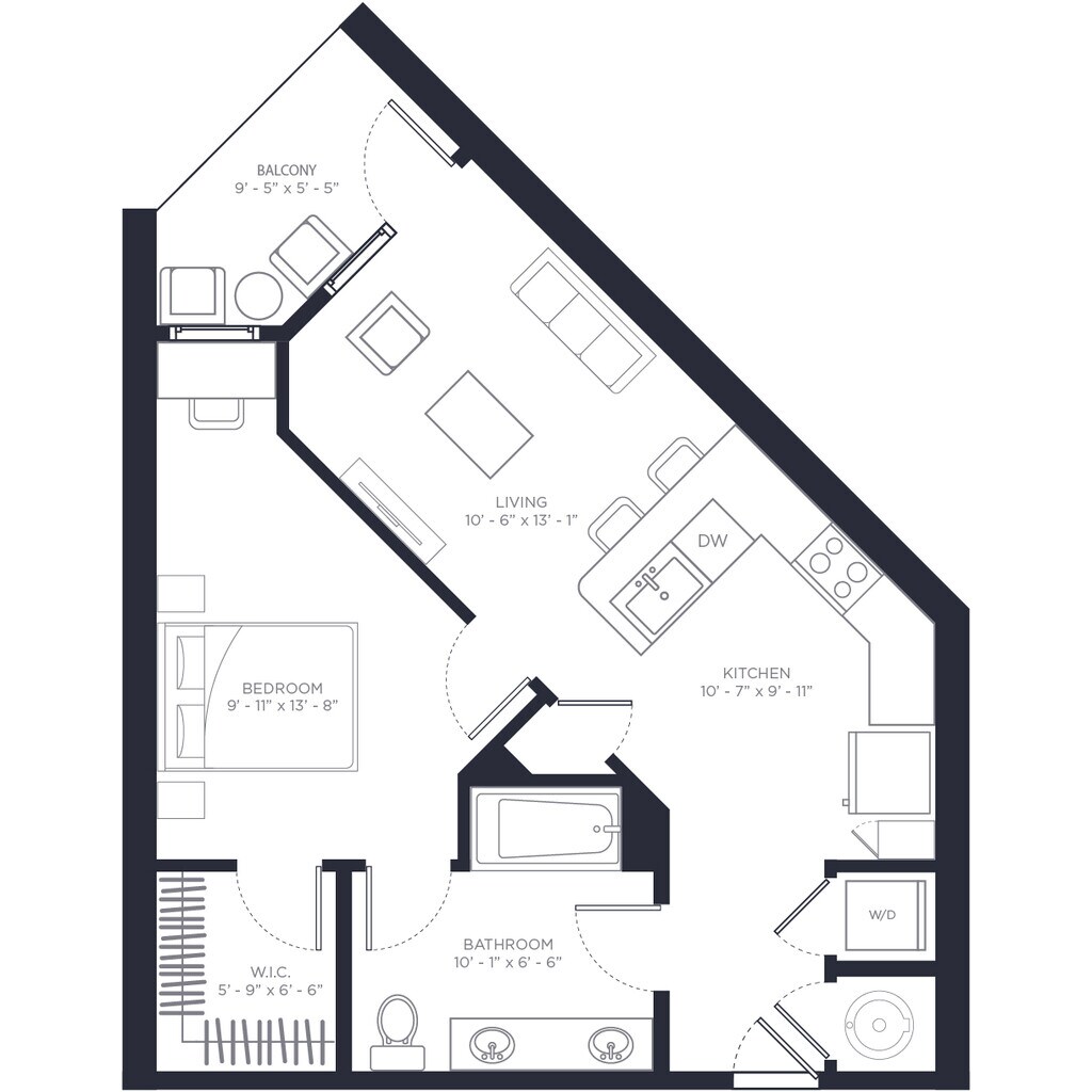 1 Bed, 1 Bath, 586 sq ftAvailable NowModel Gallery
