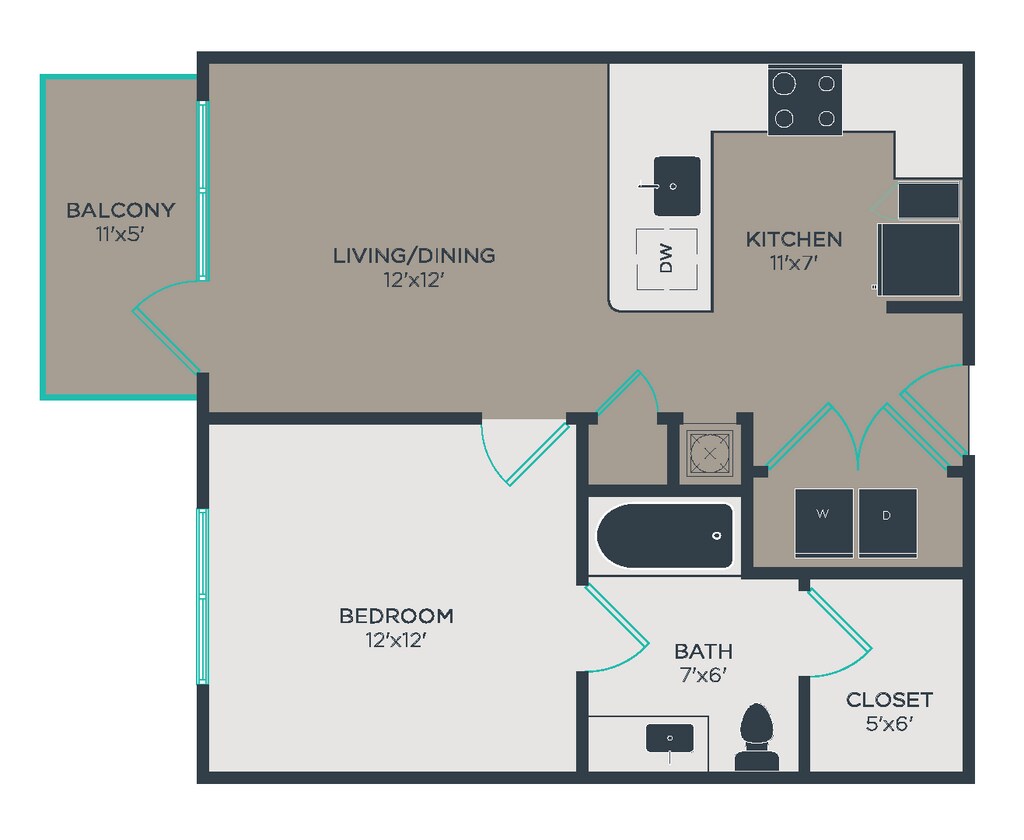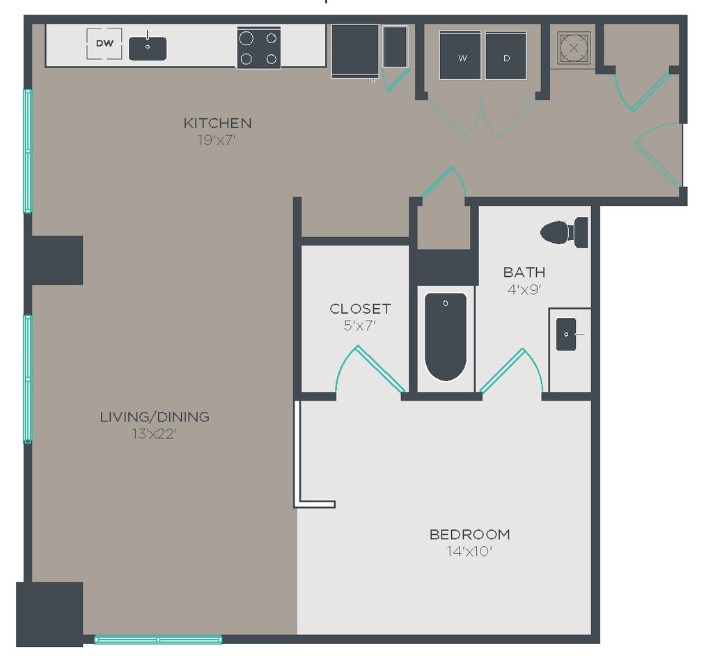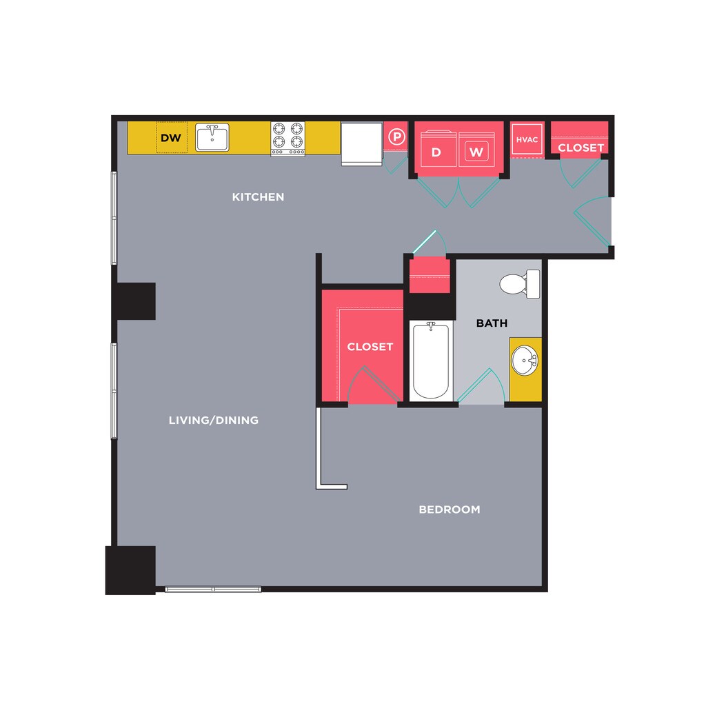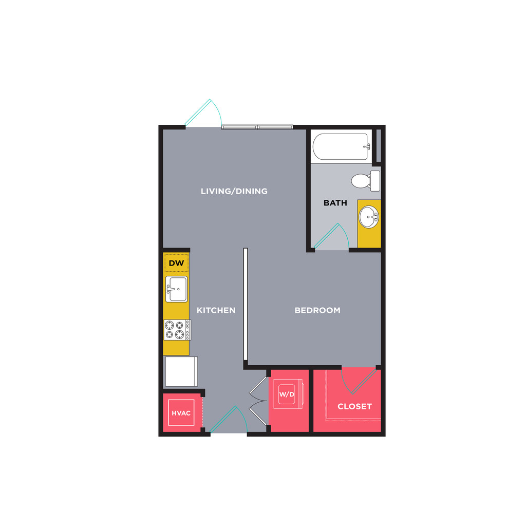 Studio, 1 Bath, 494 sq ftAvailable NowModel Gallery