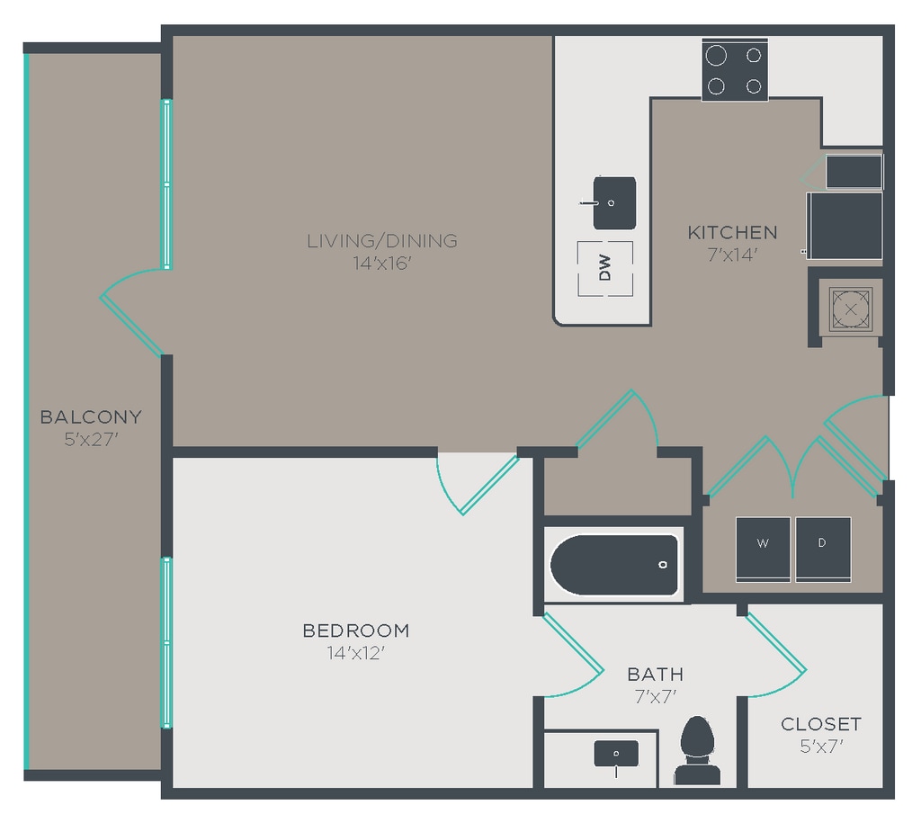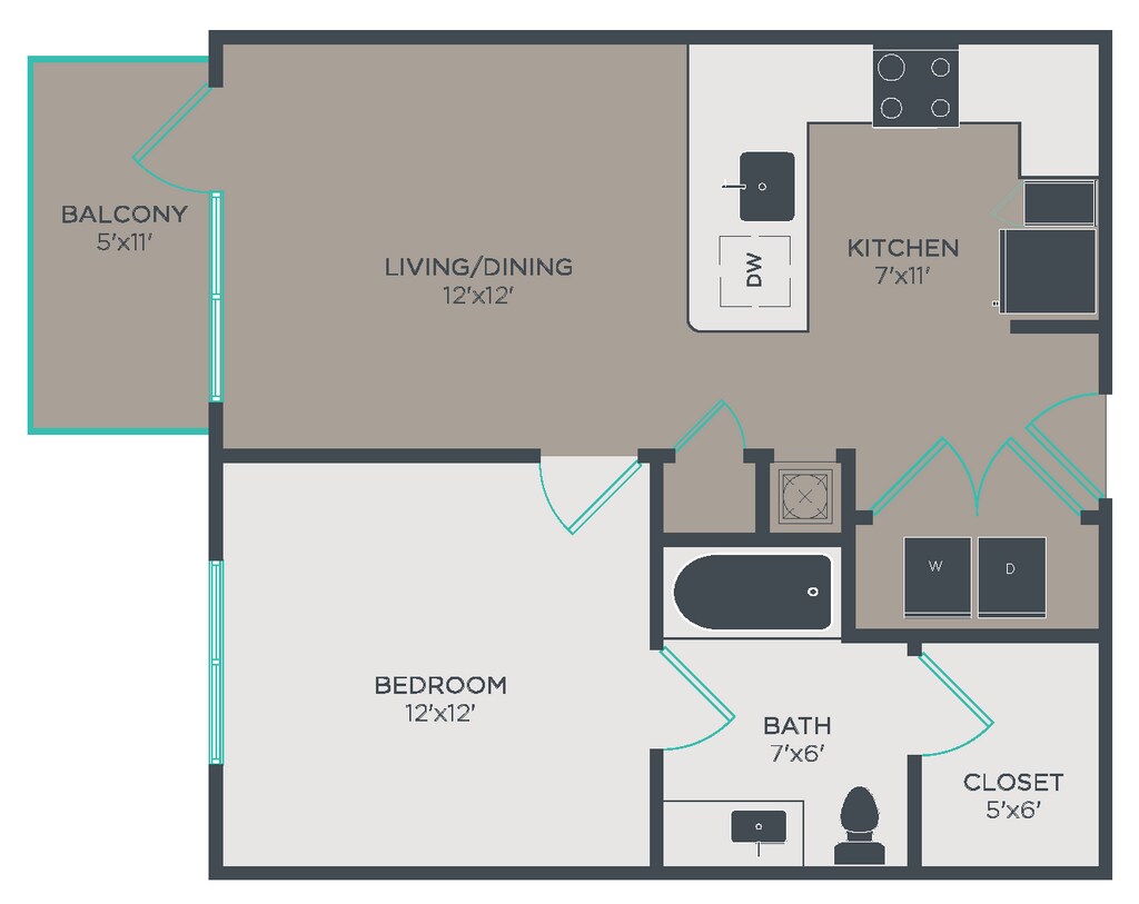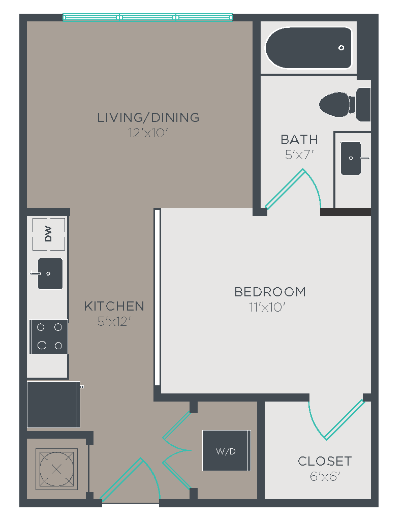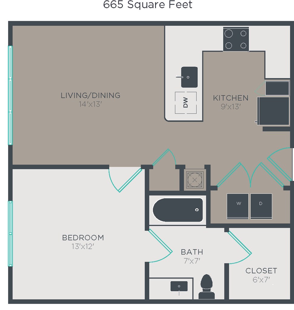 Studio, 1 Bath, 494 sq ftAvailable NowModel Gallery