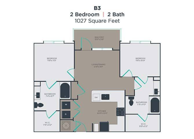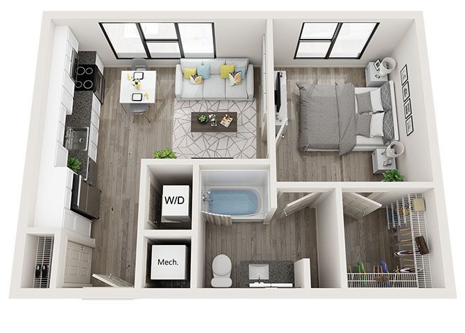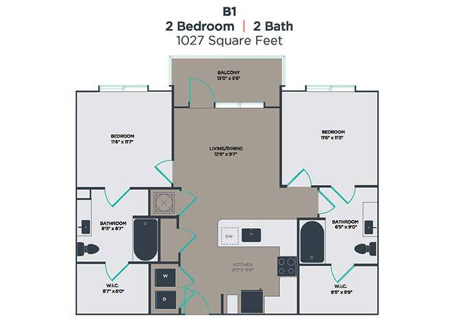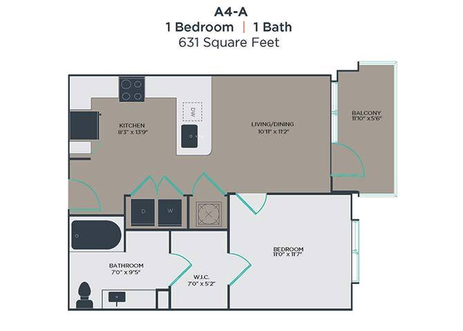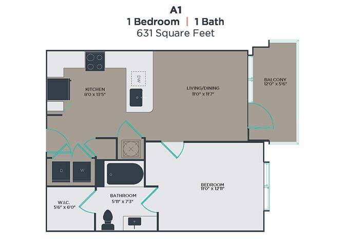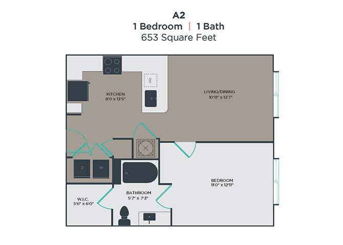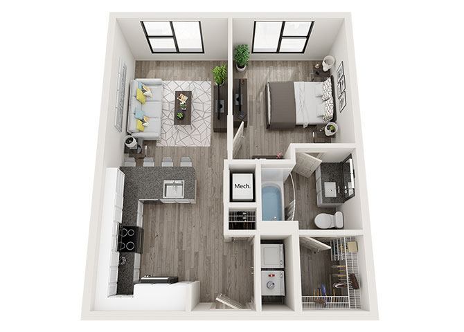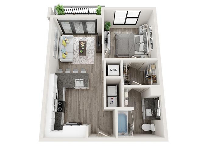 1 Bed, 1 Bath, 607 sq ftAvailable NowModel Gallery