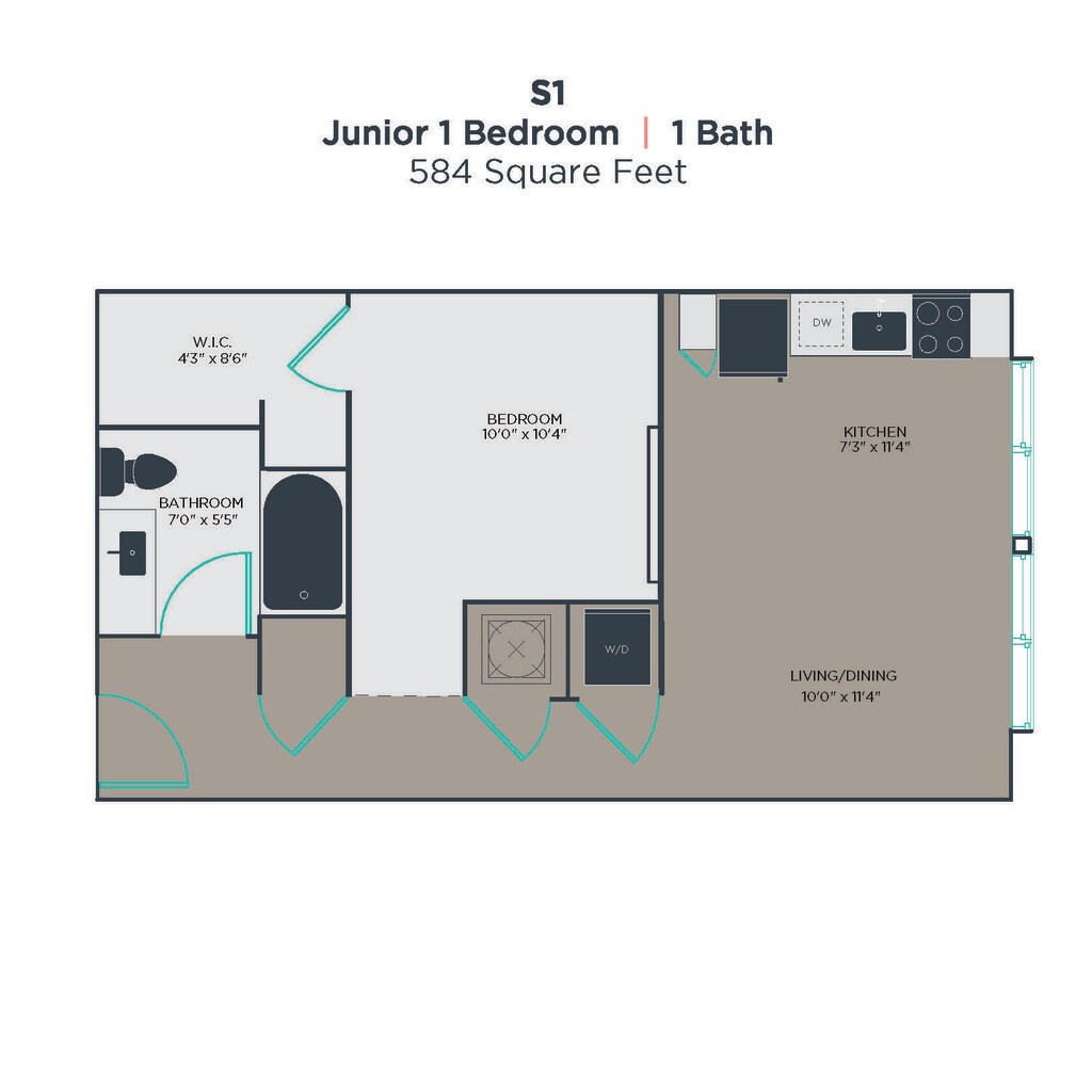 Apartment Model: S2From $1,2111 Bedroom, 1 Bath, 494 sq ftAvailable Now![]()