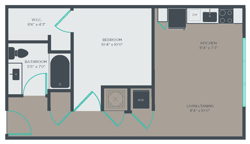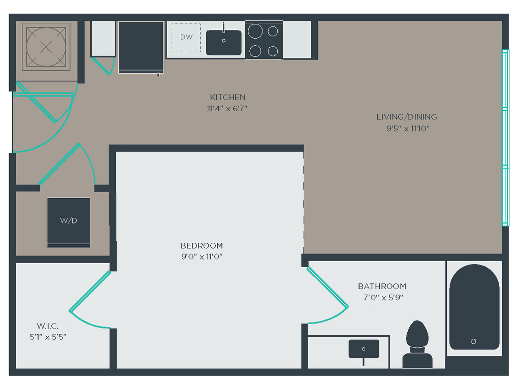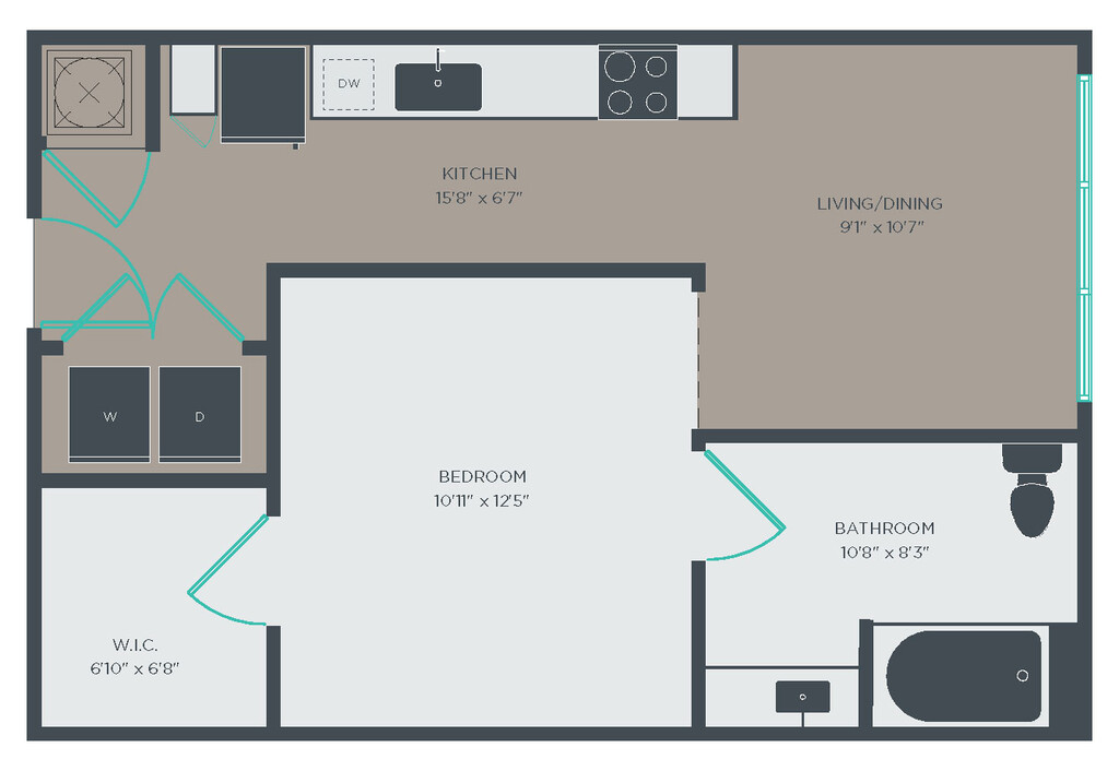 1 Bed, 1 Bath, 584 sq ftAvailable NowModel Gallery
