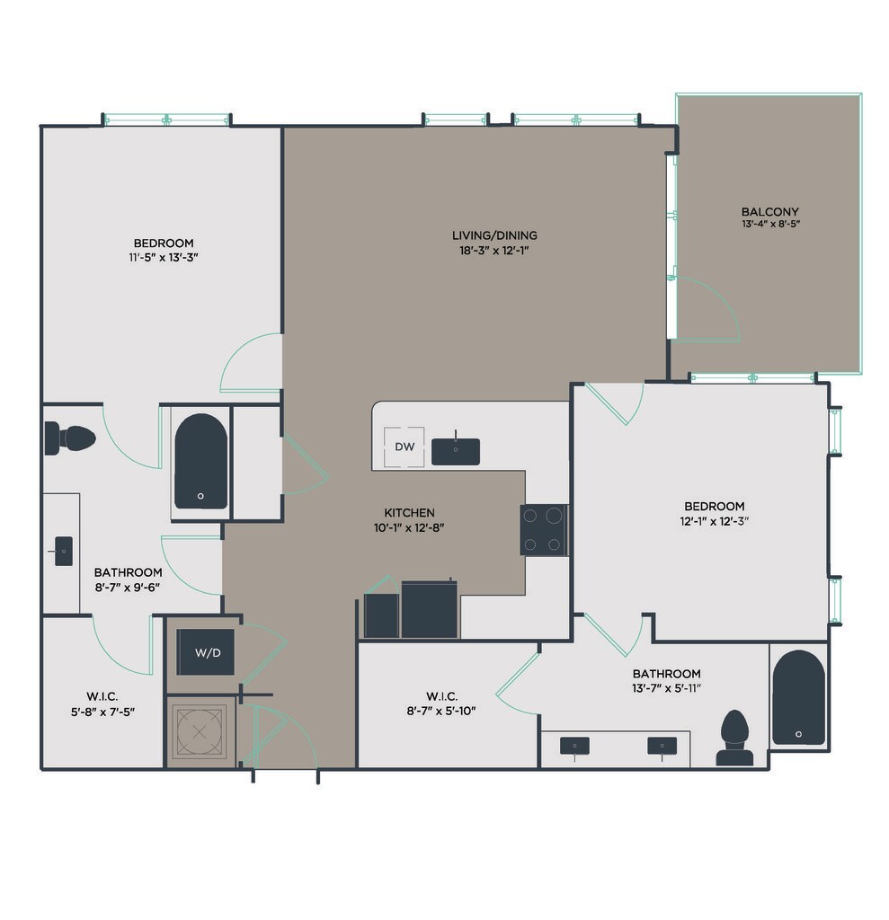 1 Bed, 1 Bath, 624 sq ftAvailable NowModel Gallery