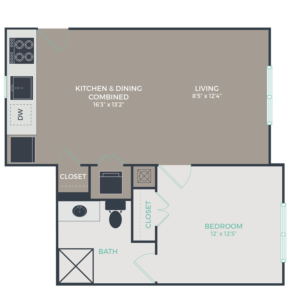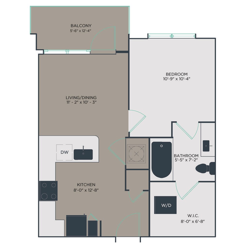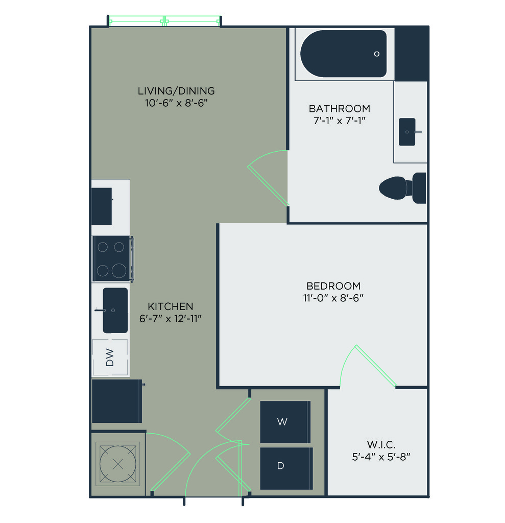 A2-B - Floorplan 1 Apartment Unit: 113Apartment Model: A2-B$1,5001 Bedroom, 1 Bath, 624 sq ftAvailable NowA2-A