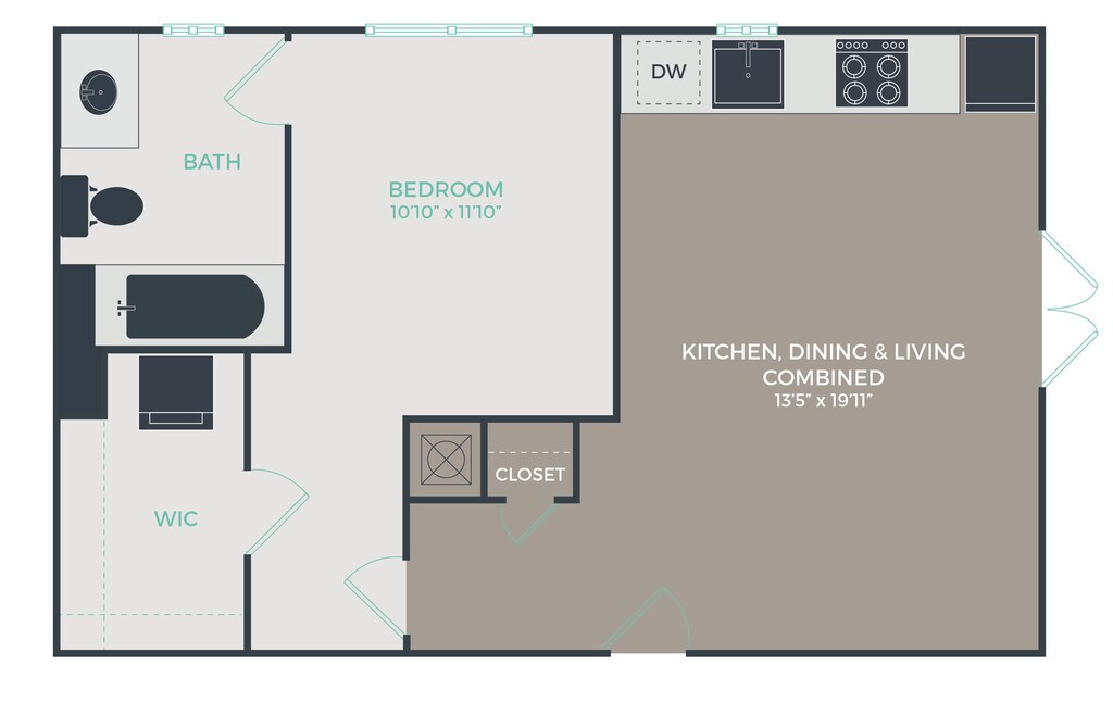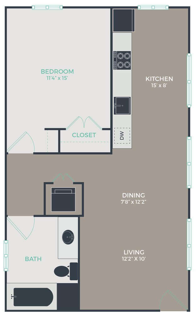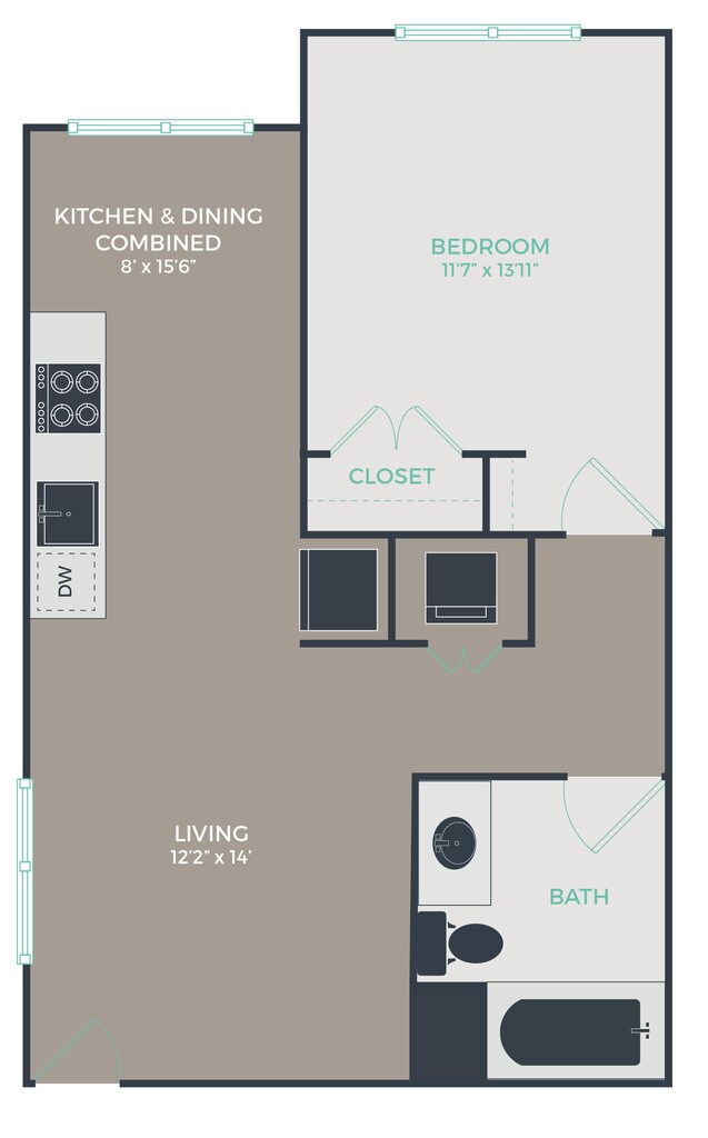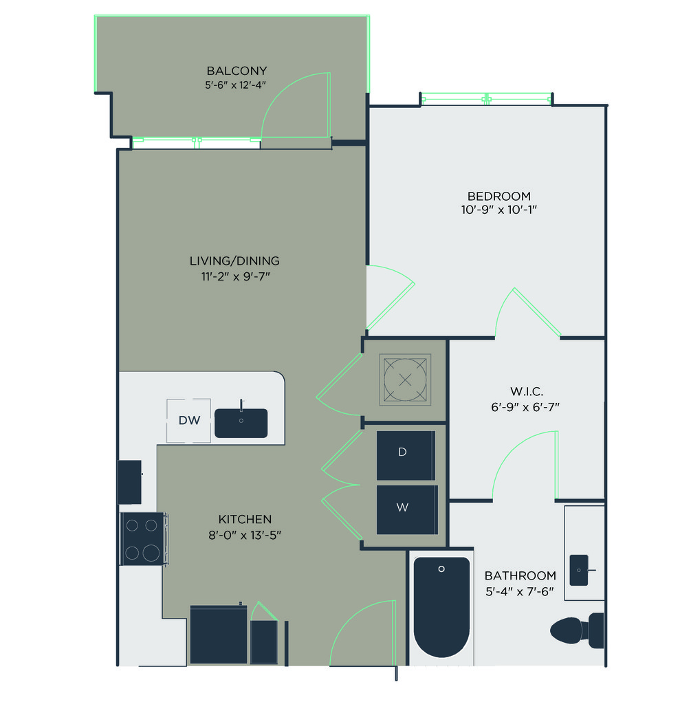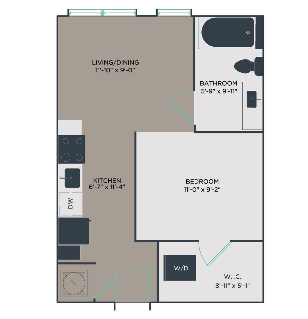 A2-B - Floorplan 1 Apartment Unit: 113Apartment Model: A2-B$1,5001 Bedroom, 1 Bath, 624 sq ftAvailable NowA2-A