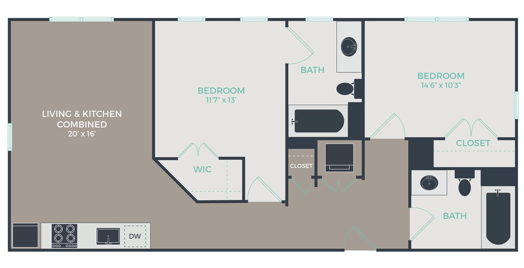 Apartment Model: A3From $1,5591 Bedroom, 1 Bath, 680 sq ftAvailable Now![]()