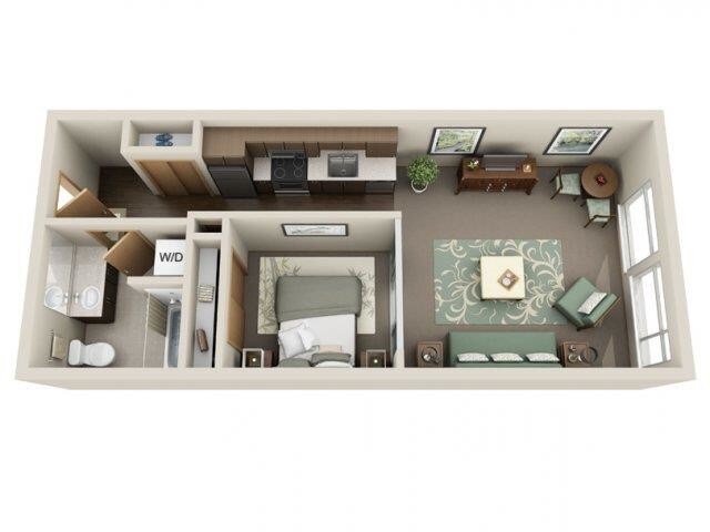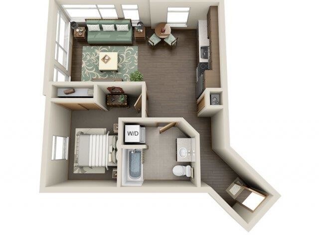 Studio, 1 Bath, 608-737 sq ftAvailable NowLargest StudioThis is the largest Studio at this PropertyModel Gallery