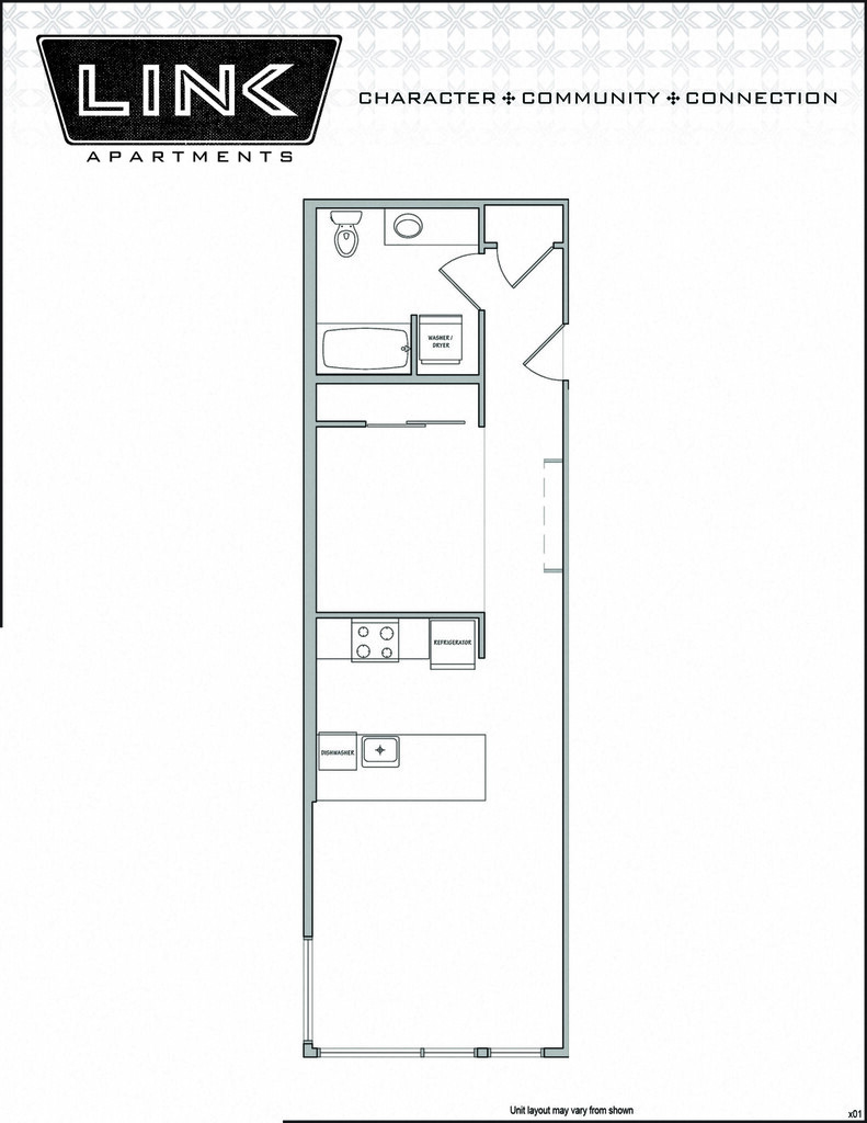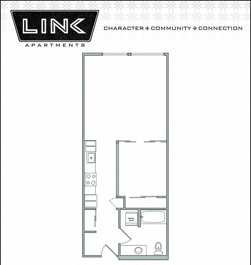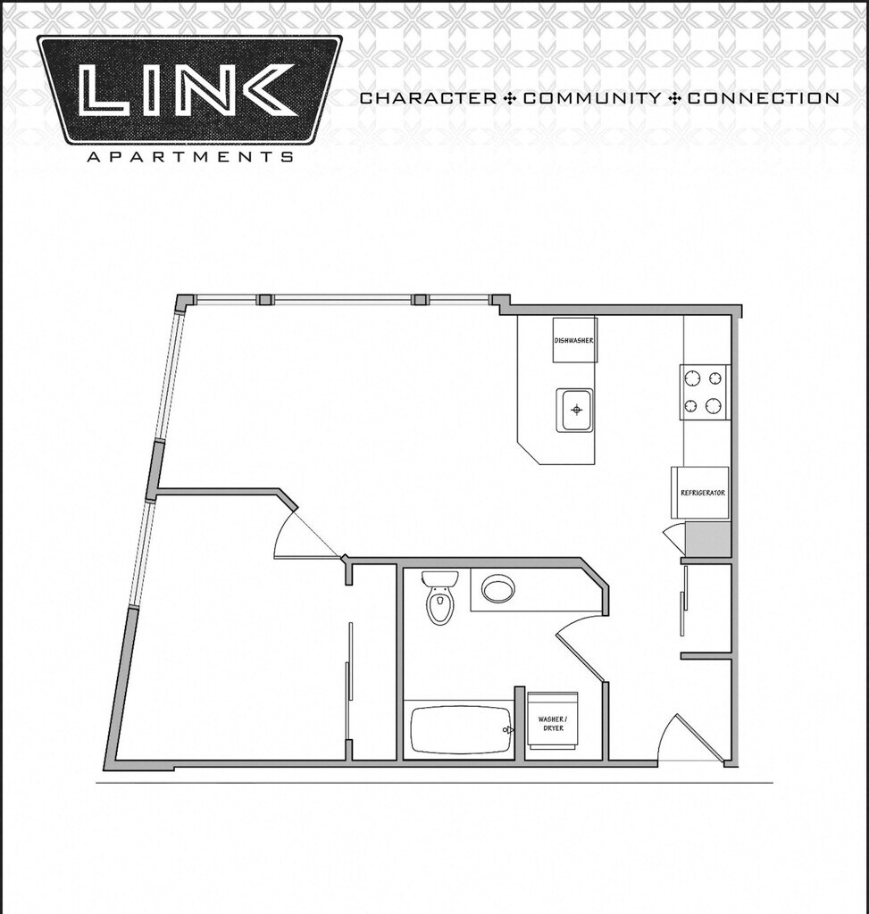 Link offers Studio to 2 Bedroom apartments having 518–1,005 sqft. Here is the current pricing and availability: