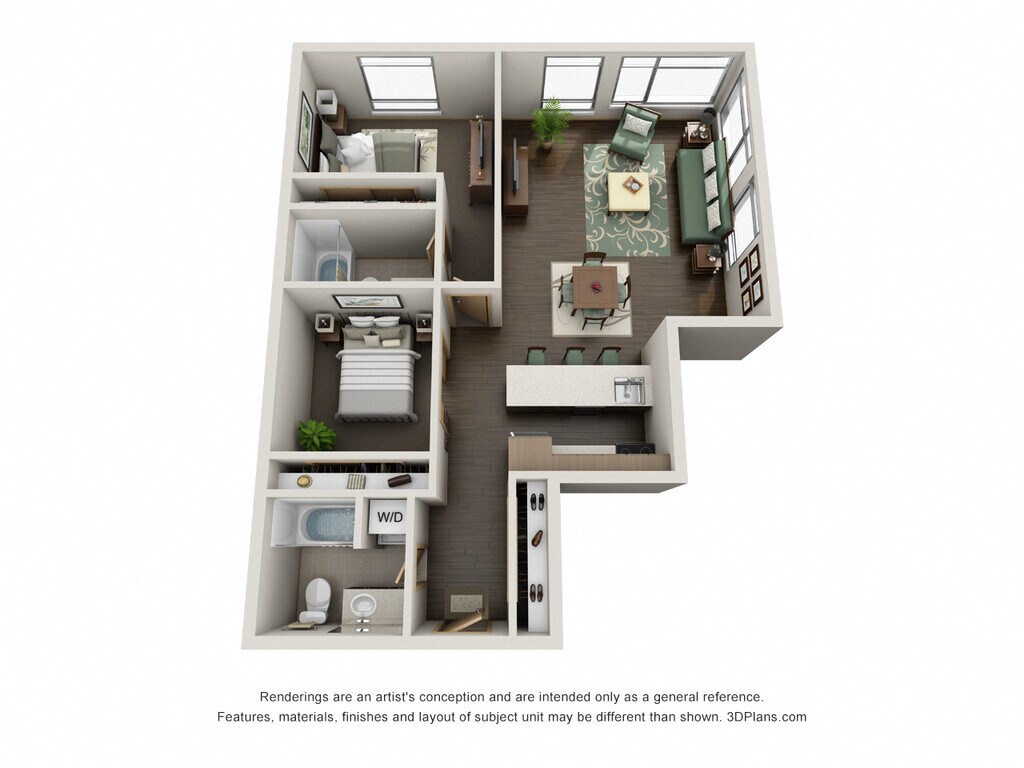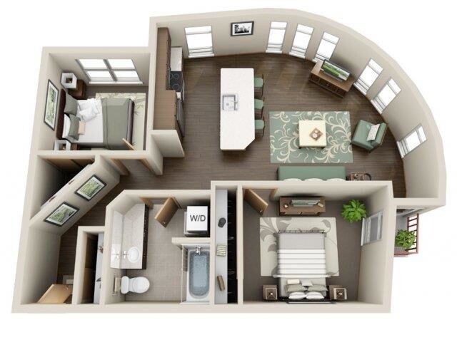 2 Beds, 1 Bath, 907-912 sq ftModel Gallery