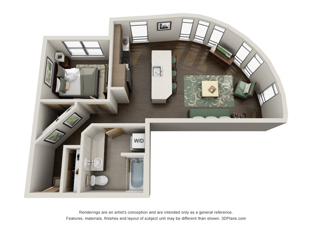 Studio, 1 Bath, 545-617 sq ftModel Gallery