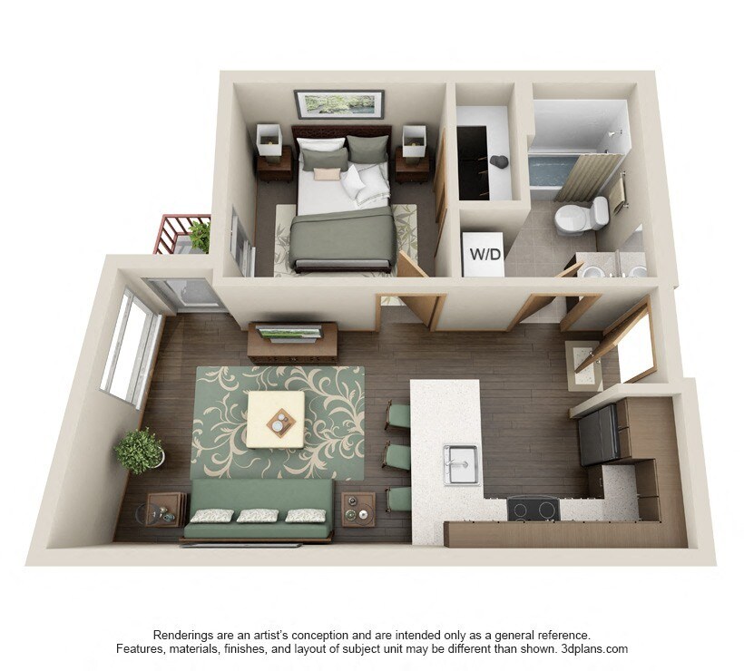 Studio, 1 Bath, 585-670 sq ftAvailable NowModel Gallery