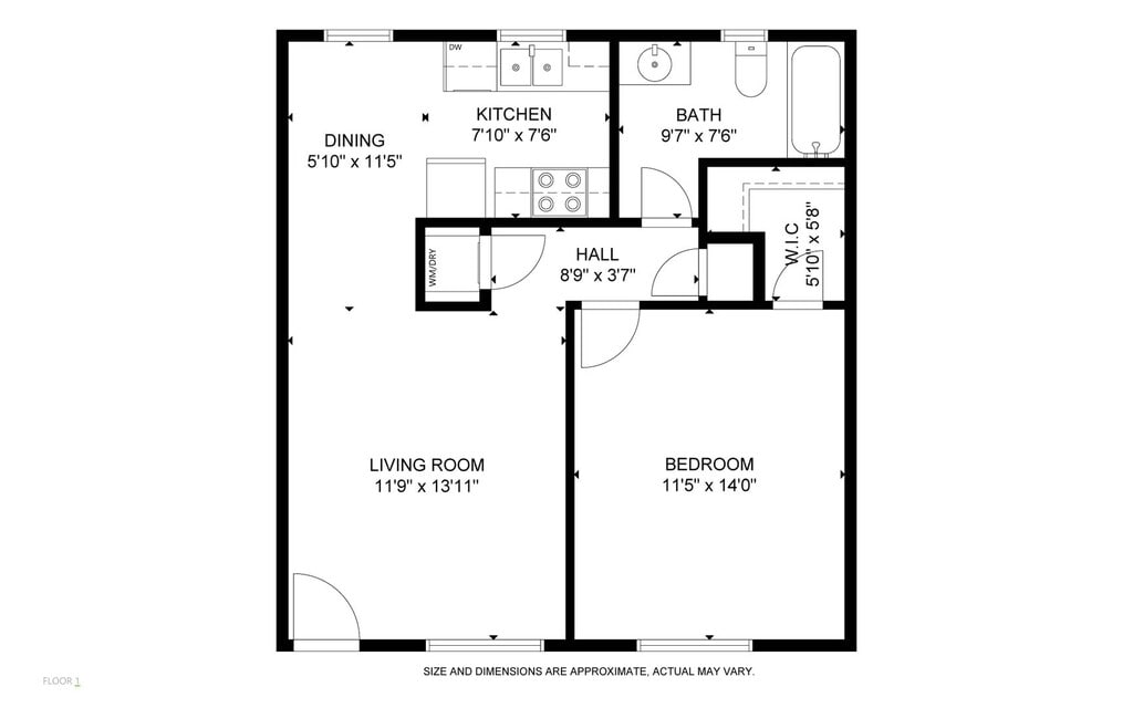 1 Bedroom / 1 Bathroom Apartment