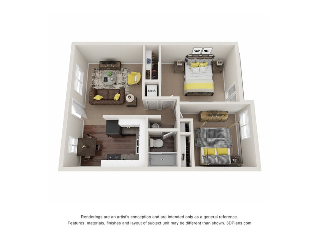 2 Beds, 1 Bath, 702 sq ftAvailable NowModel Gallery