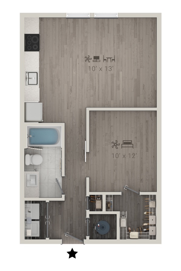Studio, 1 Bath, 589 sq ftAvailable NowModel Gallery