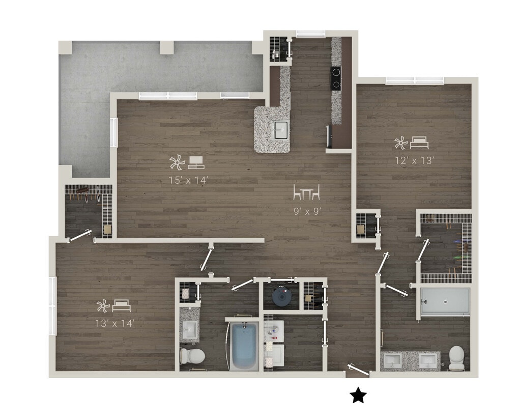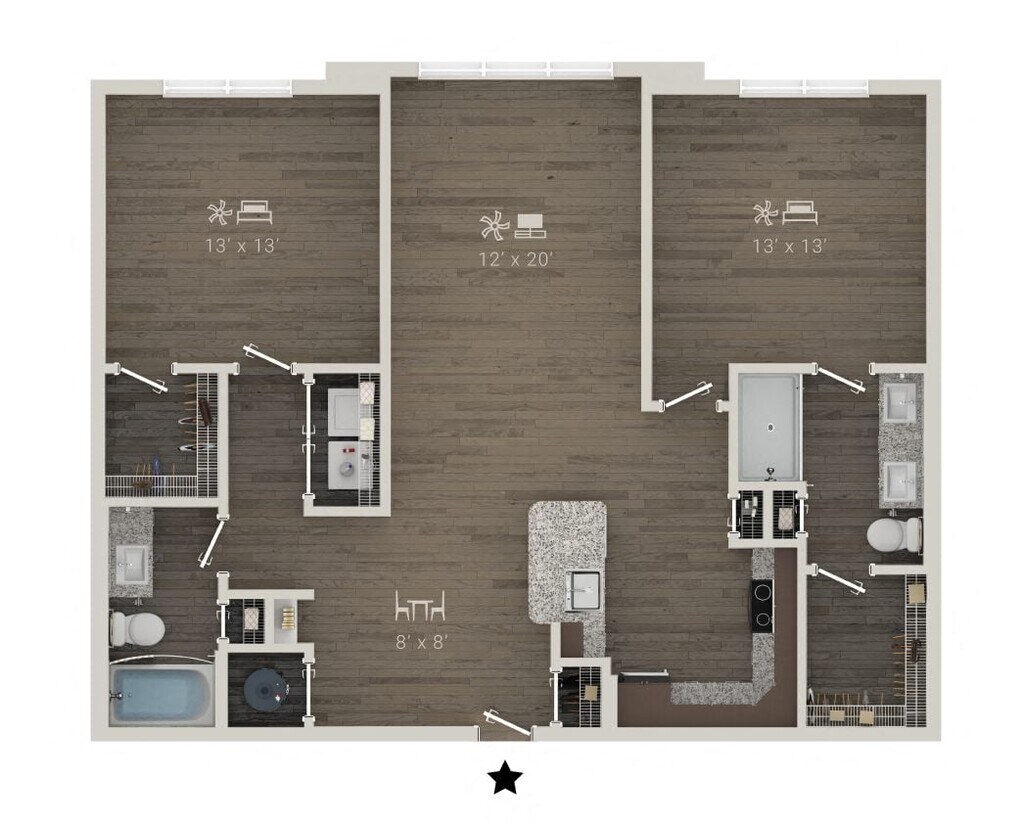 1 Bed, 1 Bath, 684-752 sq ftAvailable NowModel Gallery