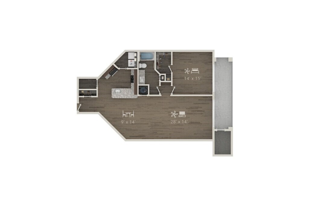 1 Bed, 1 Bath, 684 sq ftAvailable NowModel Gallery