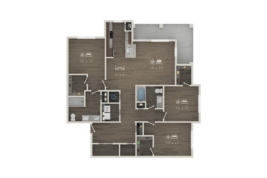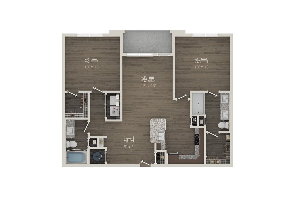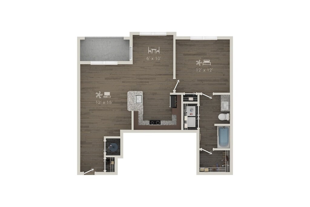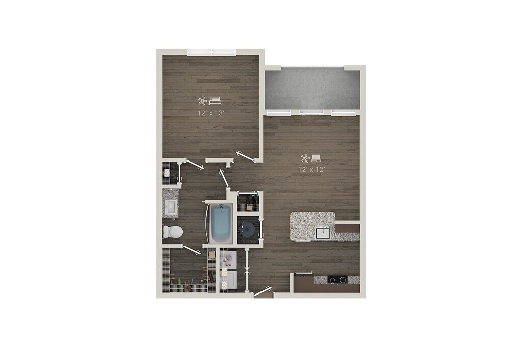 Apartment Model: A2E$1,4101 Bedroom, 1 Bath, 847 sq ftAvailable Now![]()