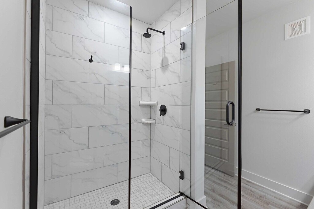 - Walk-in Showers w/ Shelves and Rain Shower Heads*