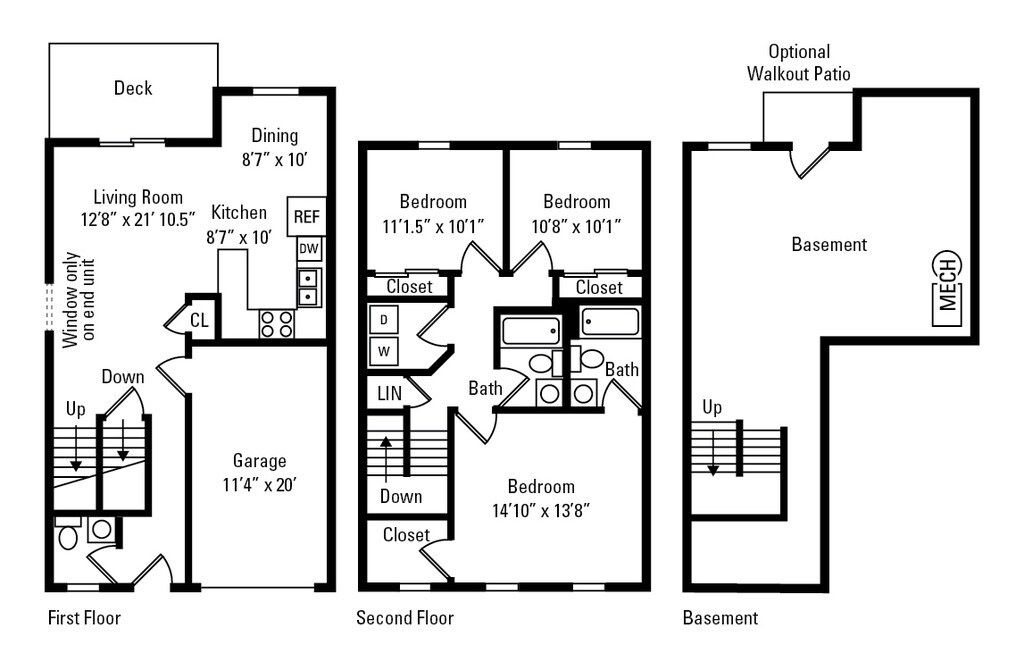 Two Bedroom 2.5 Bath Townhome with Garage - Floorplan 1 ![]()
