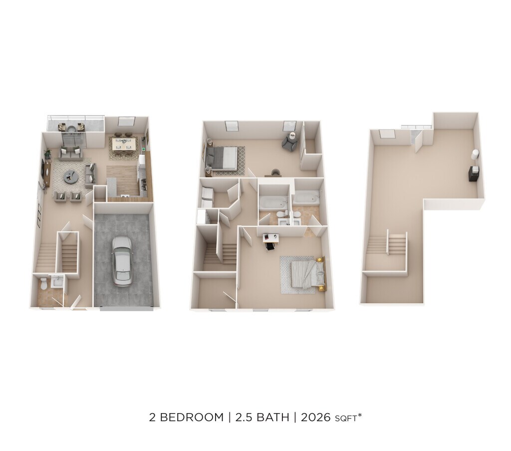 3 Beds, 2.5 Baths, 2026 sq ftAvailable NowModel Gallery