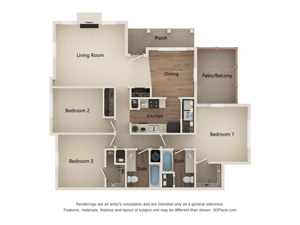 3 Beds, 2 Baths, 1386 sq ftLargest 3 BedroomThis is the largest 3 Bedroom at this PropertyModel Gallery