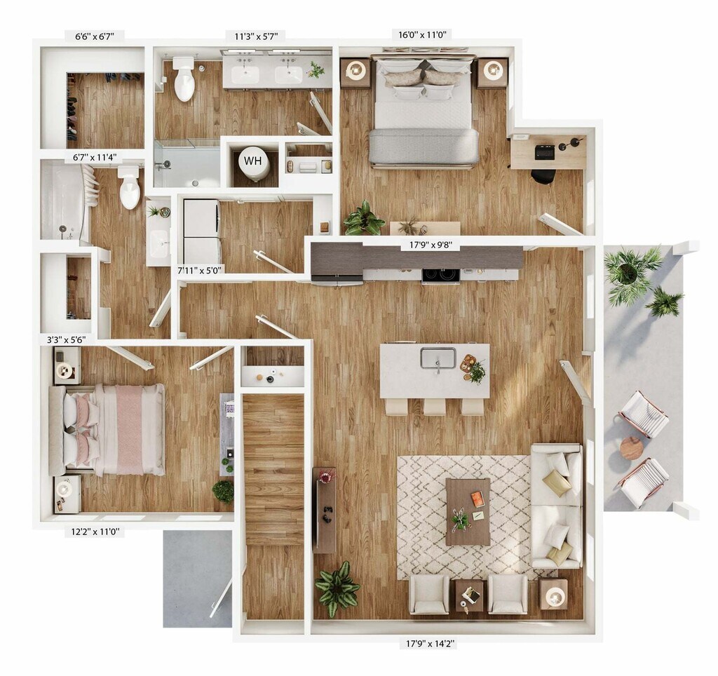 Apartment Model: A1From $1,5701 Bedroom, 1 Bath, 754 sq ftAvailable Now![]()