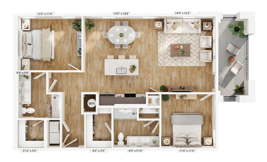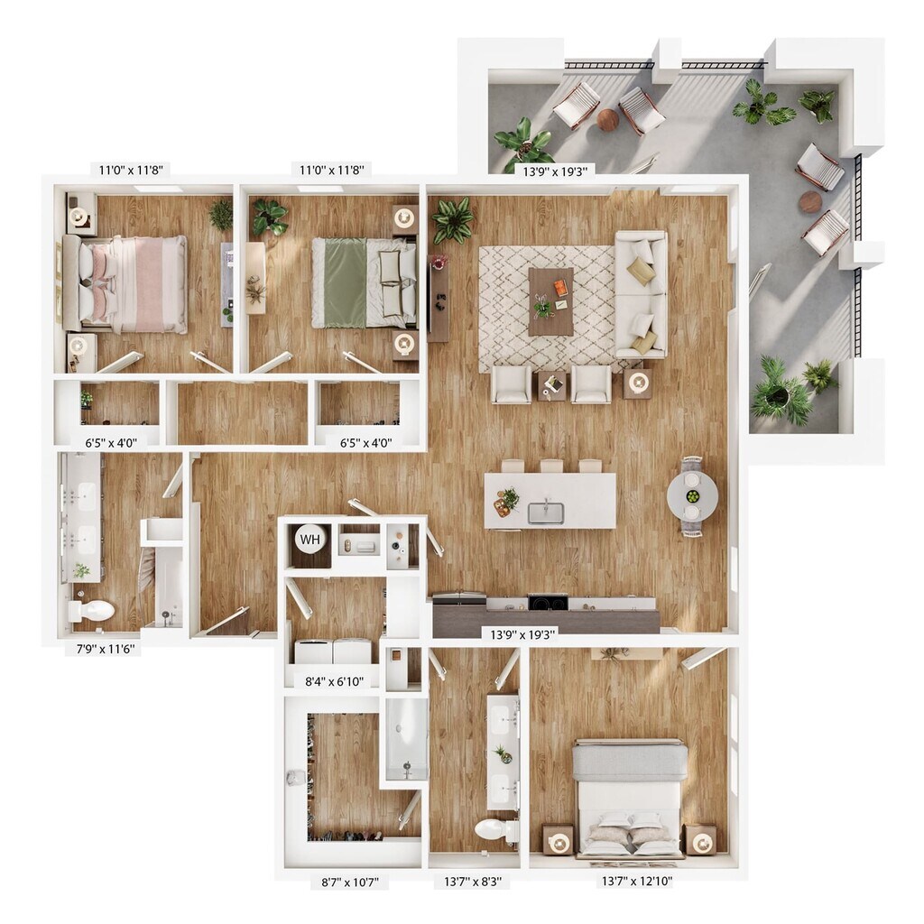 1 Bed, 1 Bath, 852 sq ftAvailable NowLargest 1 BedroomThis is the largest 1 Bedroom at this PropertyModel Gallery