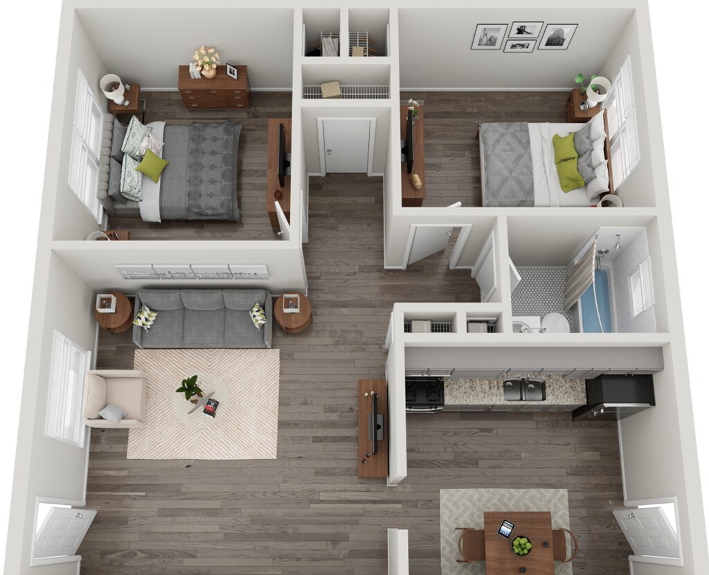 2 Beds, 1 Bath, 850 sq ftAvailable NowModel Gallery
