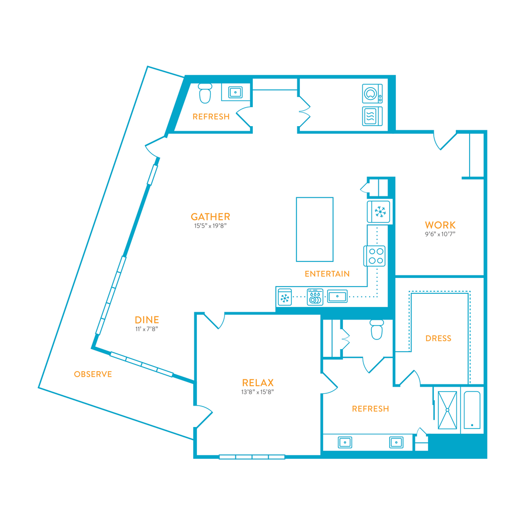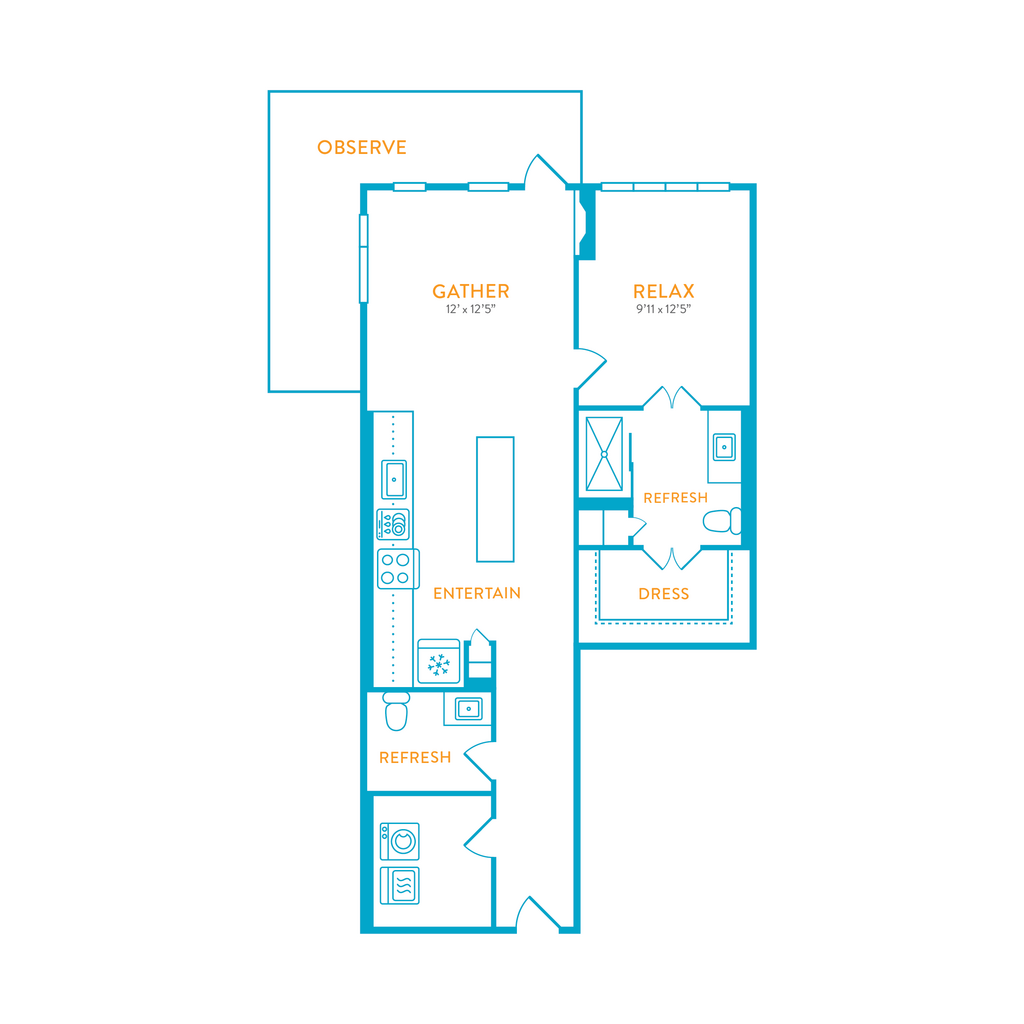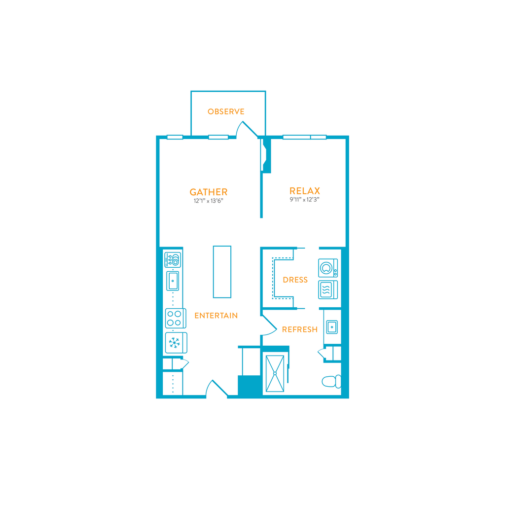 Studio, 1 Bath, 554 sq ftAvailable NowModel Gallery
