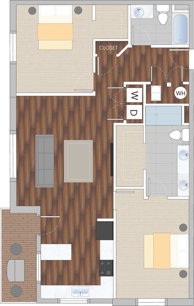 2 Beds, 2 Baths, 1258 sq ftLargest 2 BedroomThis is the largest 2 Bedroom at this PropertyModel Gallery