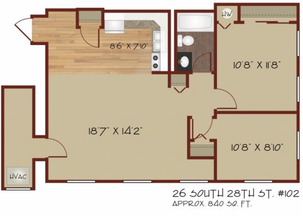 Ryan Haus #102 - Floorplan 2 Apartment Unit: RH-102Apartment Model: Ryan Haus #102Call For Rates2 Bedroom, 1 Bath, 840 sq ftAvailable January 15, 20263 Bedrooms