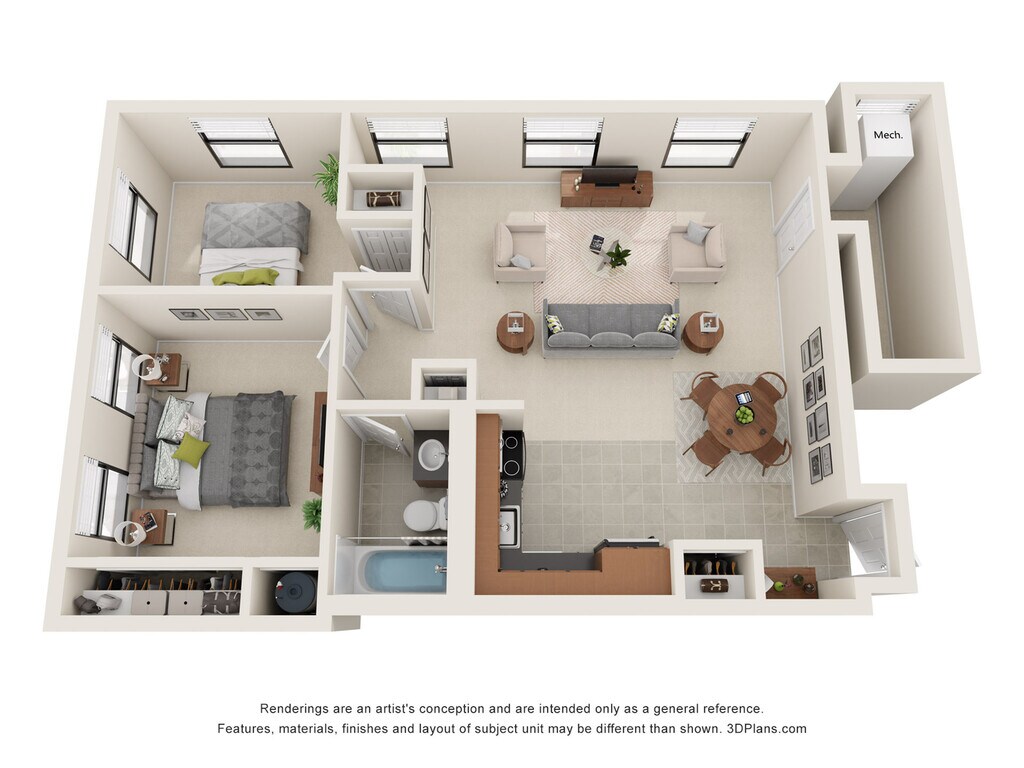 2 Beds, 1 Bath, 840 sq ftAvailable January 15, 2026Model Gallery